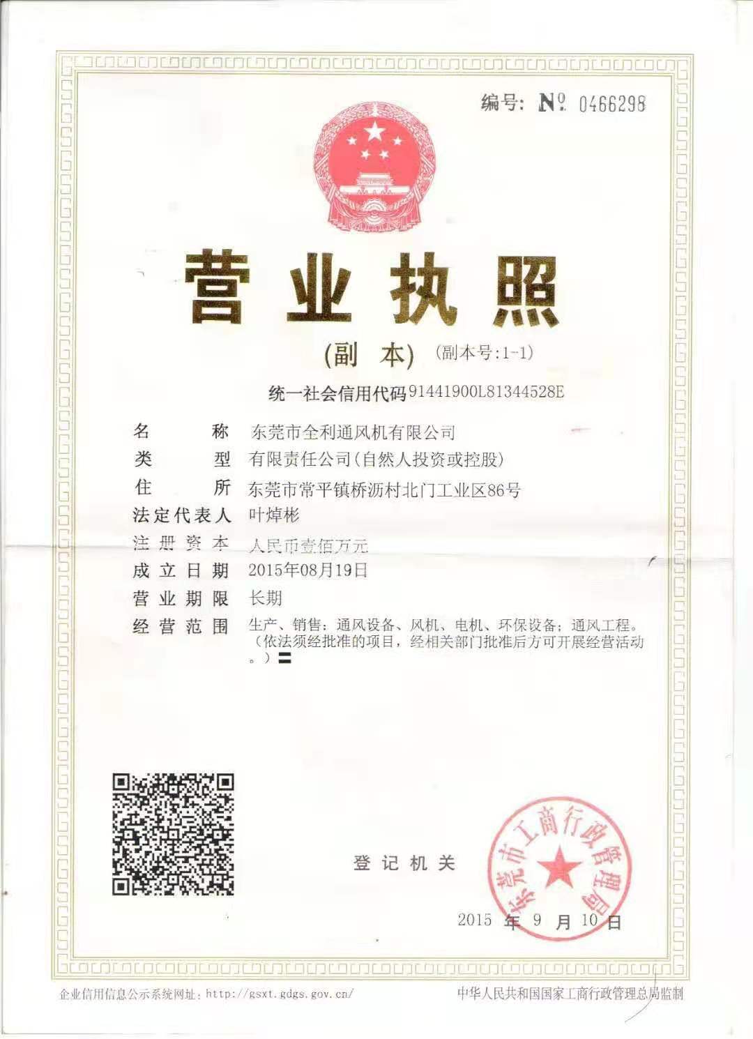 公司更名公告:全興通風設備廠更名為東莞市全利通風機有限公司