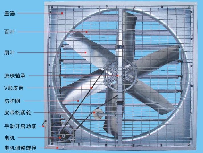 點; 百葉窗自動啟閉達到防塵、防水、美觀大方;既可吹風,也可抽風,是溫室、廠房等降溫通風